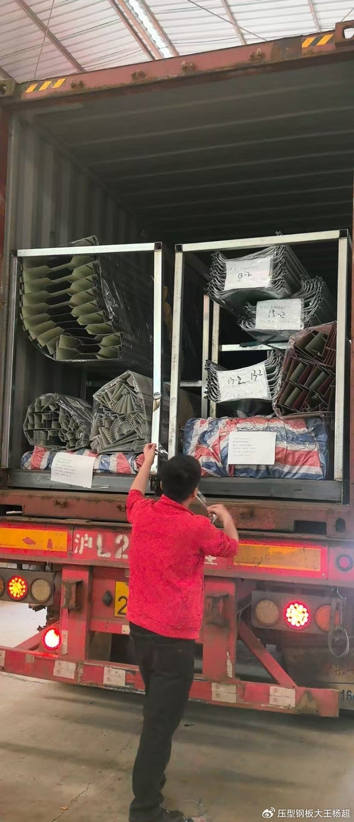 新之杰上海工厂也没有闲着,出口泰国香江项目的彩钢板也在疯狂打包,13个集装箱装的满满当当,总共涉及了5款彩钢板规格型号,分别是YX24-210-840彩钢板、YX15-225-900彩钢板、YX18-63.5-825、470彩钢板、角驰820金属封边采光瓦。